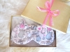 Gift boxes, such as shown in the second photo, are optional and can be found here. The pale pink cat naps mask can be found here and the black watch plaid mask can be found here.