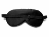 Linen/cotton yarn-dyed chambray weave of black and tan threads make up the fabric on the front side of this comfortable sleeping mask.