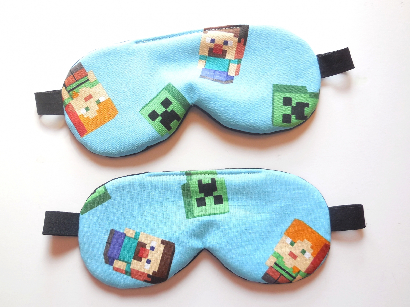 - This fun sleeping eye shade has a light turquoise Minecraft cotton print on the top side, featuring the characters shown. Each mask will be a little different depending on what part of the fabric is cut for your mask! See the last photo for variation samples.