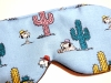 The front side of this comfortable sleeping eye mask features a mustached Snoopy relaxing in the southwest.
